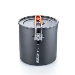 GSI’s Halulite 1.1L Boiler is minimalism at its best: this lightweight hard-anodized aluminum pot shaves ounces and conducts heat efficiently, so you use less fuel. Its folding handle locks into place for transport, allowing you to securely nest items like small fuel cans or stoves. Includes mesh stuff sack.