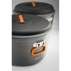 Locking, double bail handles make for easy handling of 5 L pot and secure enitre set for transport.